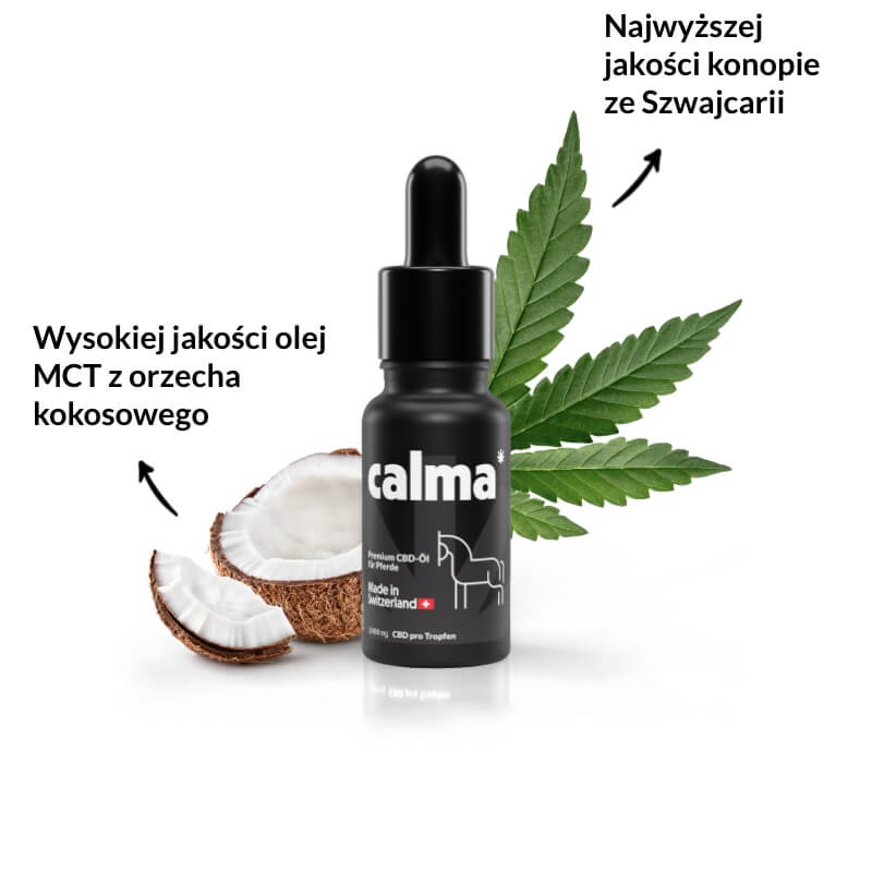 Ważne: nasze krople CALMA CBD dla koni nie zawierają THC (0,0%).